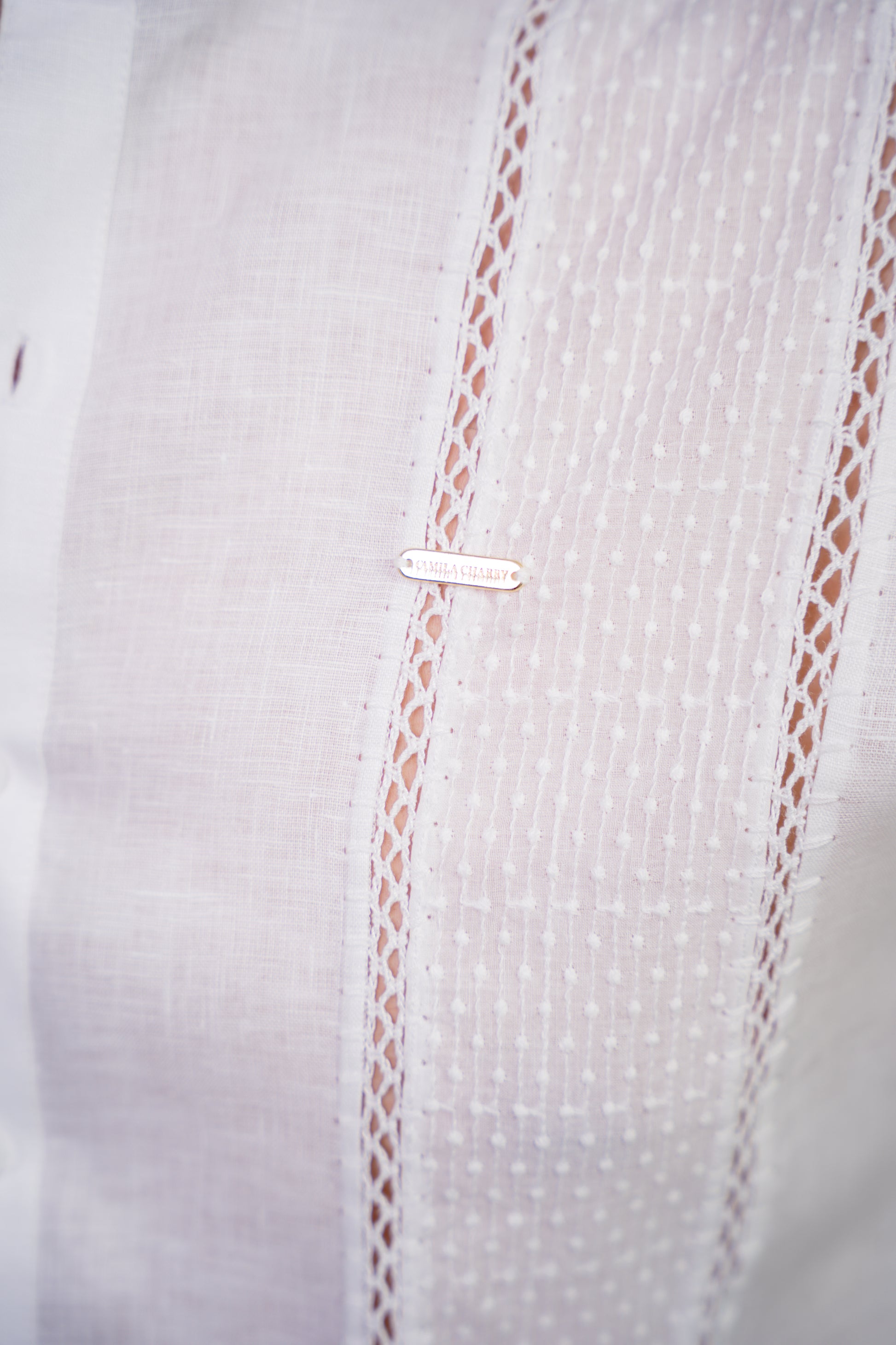 Descubre nuestra camisa Guayabera Rosendo, una prenda única que combina el arte tradicional con la elegancia contemporánea. Confeccionada artesanalmente y bordada a mano, esta guayabera representa el alma del trabajo hecho con pasión y dedicación. Elaborada en lino Olán 100% natural, destaca por su frescura, textura suave y una caída impecable que eleva cualquier look masculino.