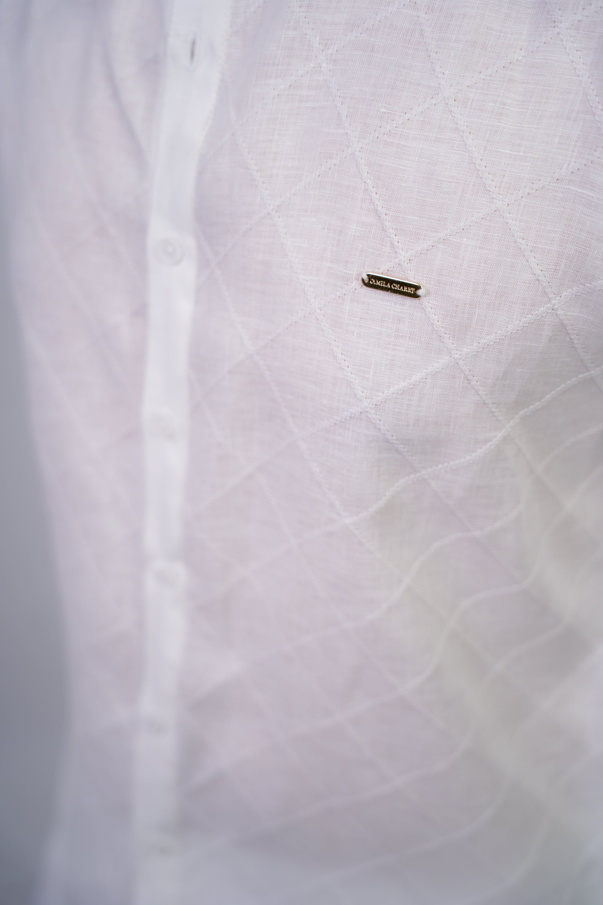 Una prenda que destaca por su originalidad y precisión en los detalles. La camisa Julio ha sido diseñada para quienes valoran la confección artesanal y el estilo con carácter. Su elaboración con costura de doble aguja garantiza durabilidad, mientras que su diseño frontal en forma de rombos la convierte en una pieza única.