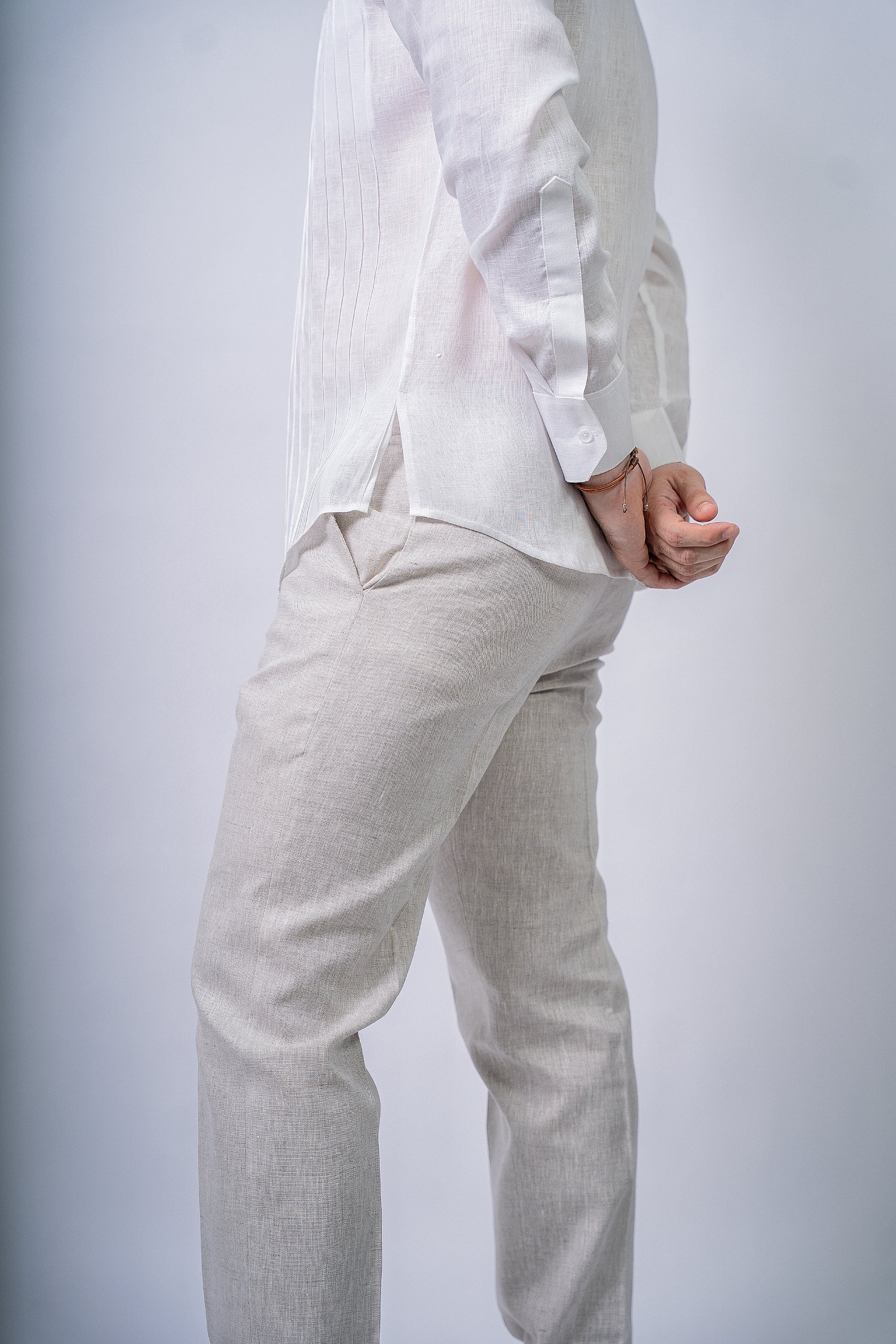Nuestras prendas son piezas únicas confeccionadas en lino Olán de la más alta calidad, enriquecidas con técnicas artesanales como el bordado, el recamado y la pintura a mano. Cada diseño refleja elegancia y distinción, pensado para quienes valoran el lujo discreto y auténtico.