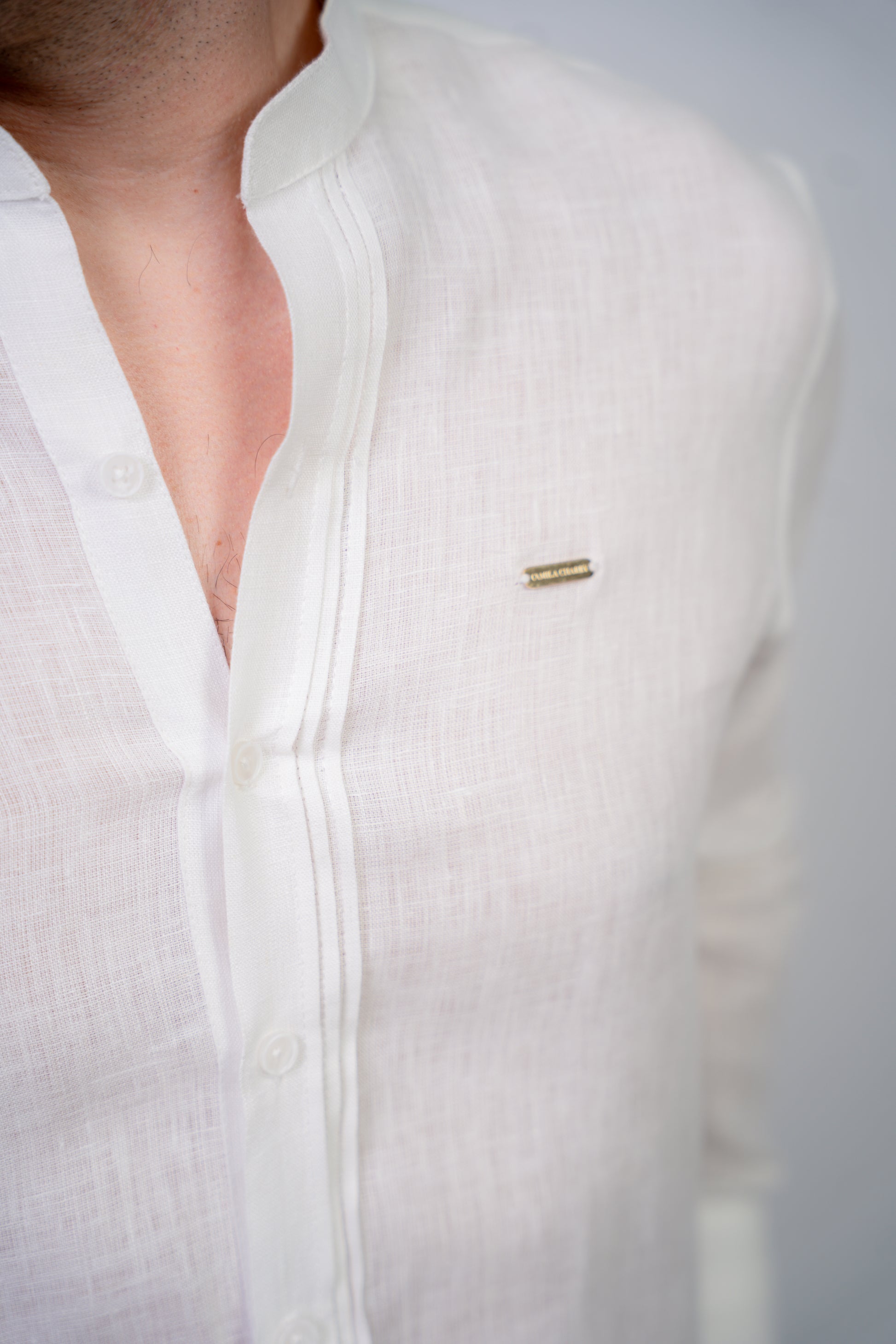 Descubre nuestra camisa Guayabera Abel , una prenda emblemática elaborada en 100% lino Olán , reconocida por su frescura, elegancia y calidad superior. Su diseño de manga larga , cuello Neru. y detalles de alforzas artesanales en el frente y y detalles de alforzas artesanales en el frente y los puños, reflejando el equilibrio perfecto entre tradición y estilo contemporáneo.